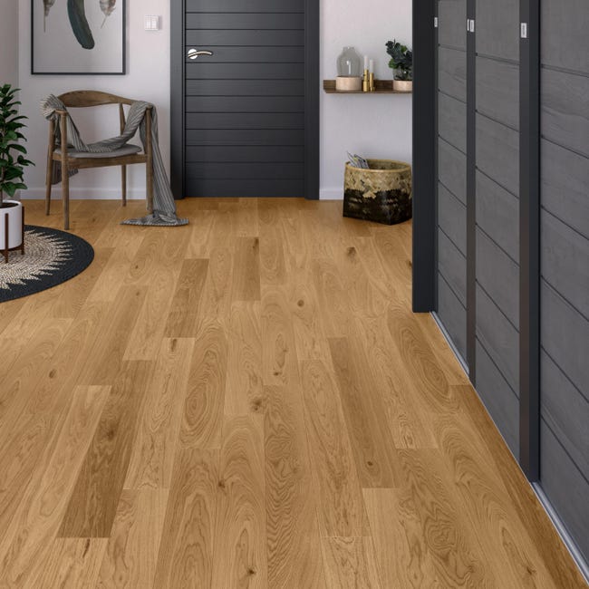 Et pour cela, voici le conseil que je partage systématiquement : j’ai choisi exactement le même parquet que celui de ma pièce de vie et de mon couloir.